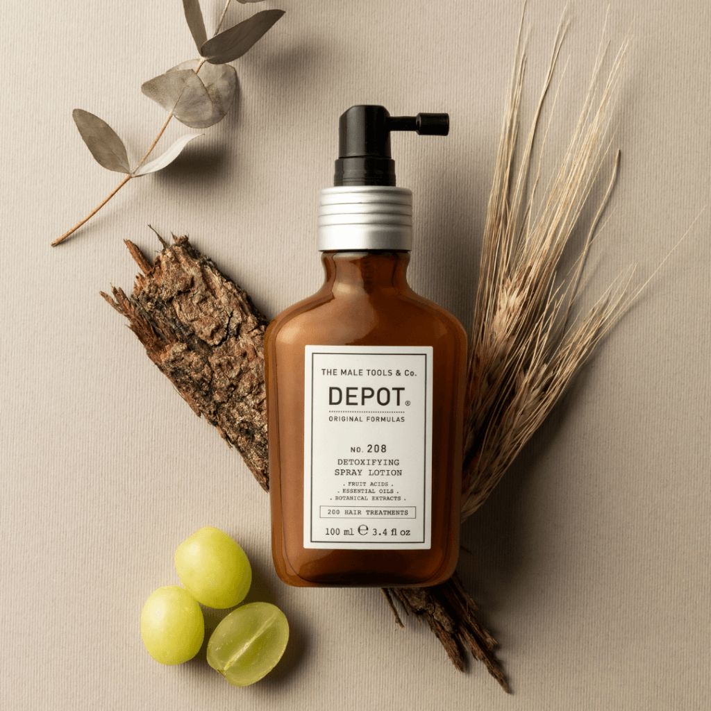 DEPOT no. 208 Detoxifying Spray Lotion syväpuhdistaa ja tasapainottaa hiuspohjaa. Suihkevoiteesta löytyy lukuisia hoitavia ainesosia, lue lisää lisätiedoista!